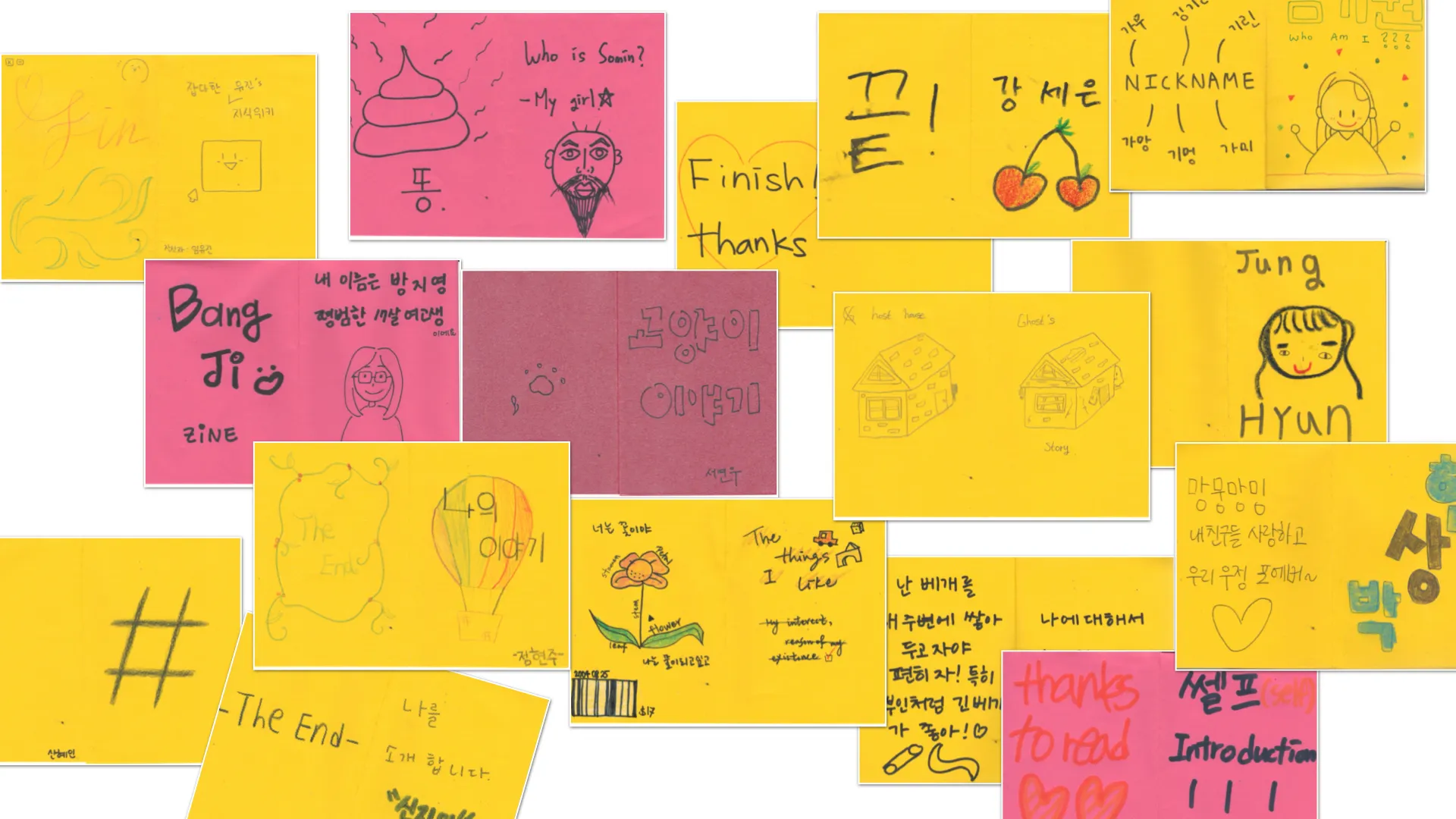 : A4를 이용한 8페이지 작은 책 만들기를 경험한다. 저자로서 자신의 개성, 색깔을 드러내는 작은 책을 만들고 이를 공유하며 출판활동의 의미를 되새긴다.