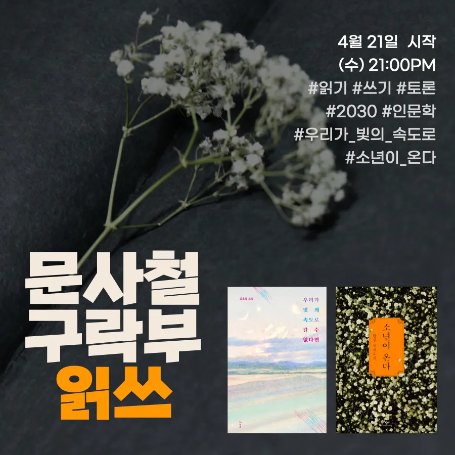 인문학에 대한 막연한 동경을 가져본 일이 있나요? 인문학을 공부해겠는데, 책을 읽고 글을 써보고 싶은데 시작도 못하고 생각에 그친 적이 있나요? 인문학이 멀고 낯선 2030을 위한 기초 인문역량 학습 모임, 문사철 구락부 읽쓰. 읽기와 쓰기에서 시작해 인문학 기본 초식을 익힙니다.