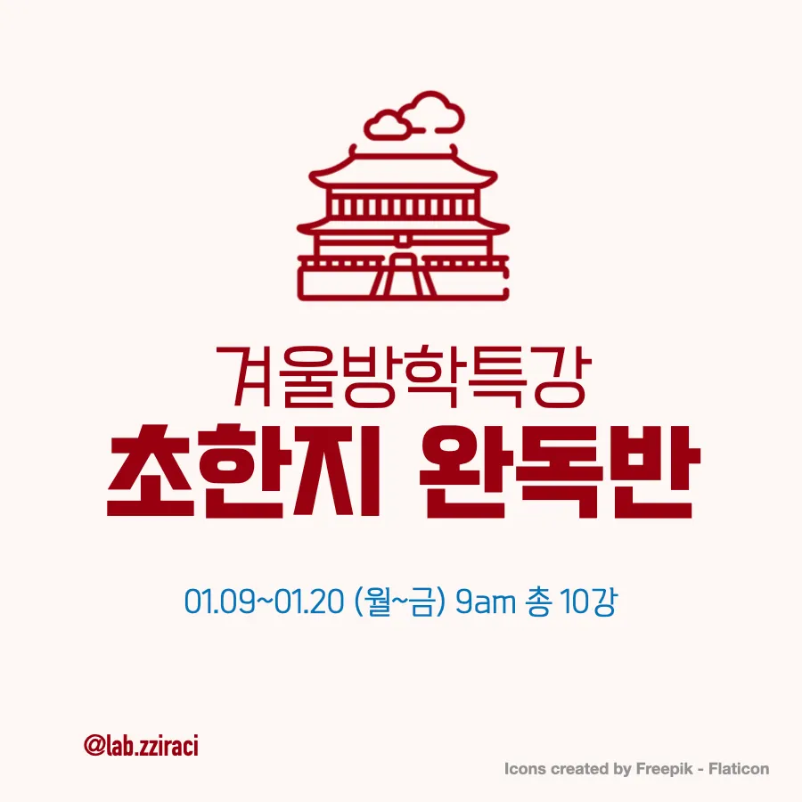 일 시 : 2023년 01.09~01.20 월~금 9am (주5회*2주 총10회 50분 수업)