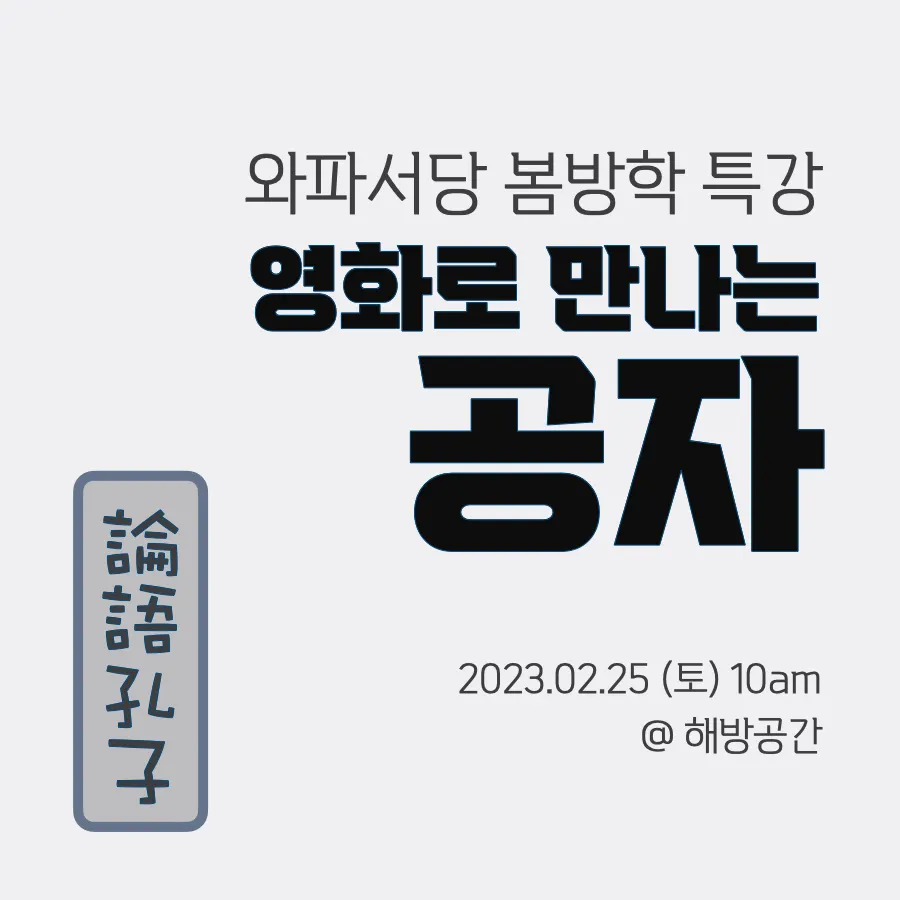방 식 : <공자 춘추전국시대> 영화를 함께 보며 공자의 생애와 함께 간단한 <논어> 문장을 익힙니다.