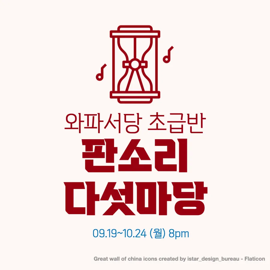 일 시 : 9월 19일~10월 24일 (월) 저녁 8시 (50분, 총 5강 10월 3일은 쉽니다.)