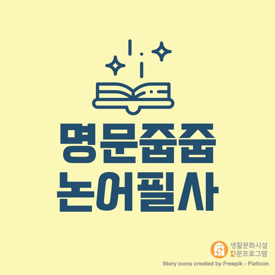 명문의 보물창고 <논어>를 만납니다. 공자와 제자들의 대화록, <논어>를 함께 읽고 쓰며 명문장을 갈무리합시다. 생각을 나누고 의견을 덧붙여 새롭게 재구성해봅니다. 오늘날 관점에서 새롭게 재해석되고 재구성되는 <논어>는 어떤 모습일까요? 명문줍줍 과정 속에 <논어>의 새로운 가능성을 탐구합니다.